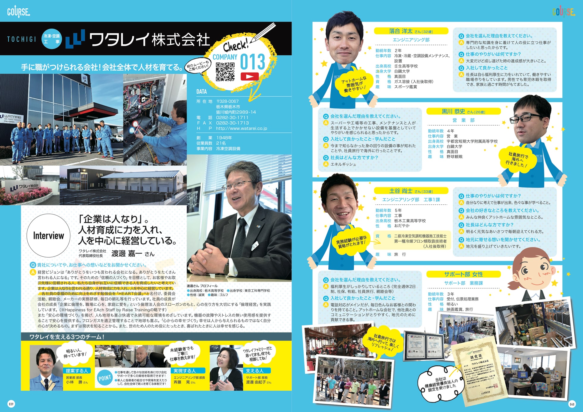 1948年の創業以来、地元栃木を中心に地域に根ざして快適な環境づくりを行ってきた私たちワタレイで、もっと快適で安心して暮らせるより良い社会をつくっていきませんか。
